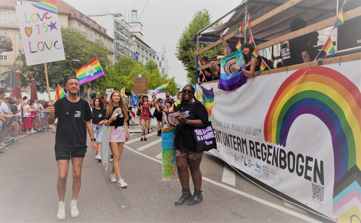 Anlässlich des letzten CSDs hat sich, initiiert von der tgbw, eine breite Allianz aus christlichen, jüdischen, muslimischen und türkeistämmigen Organisationen gebildet, die sich gemeinsam für die Rechte von LSBTIQ* einsetzt. Zu diesem Bündnis gehören neben der tgbw die MCC Gemeinde Salz der Erde Stuttgart, die LGBTJews und die Queer Muslimische Allianz. Diese Kooperation führen sie in dem Projekt „Unterm Regenbogen begegnen wir uns“ rund um öffentliche Veranstaltungen sowie an religiösen und queeren Fest- und Gedenktagen fort und nehmen gemeinsam unter dem Motto „Zusammen laut! Für queeres Leben weltweit“ am diesjährigen CSD-Pride teil.